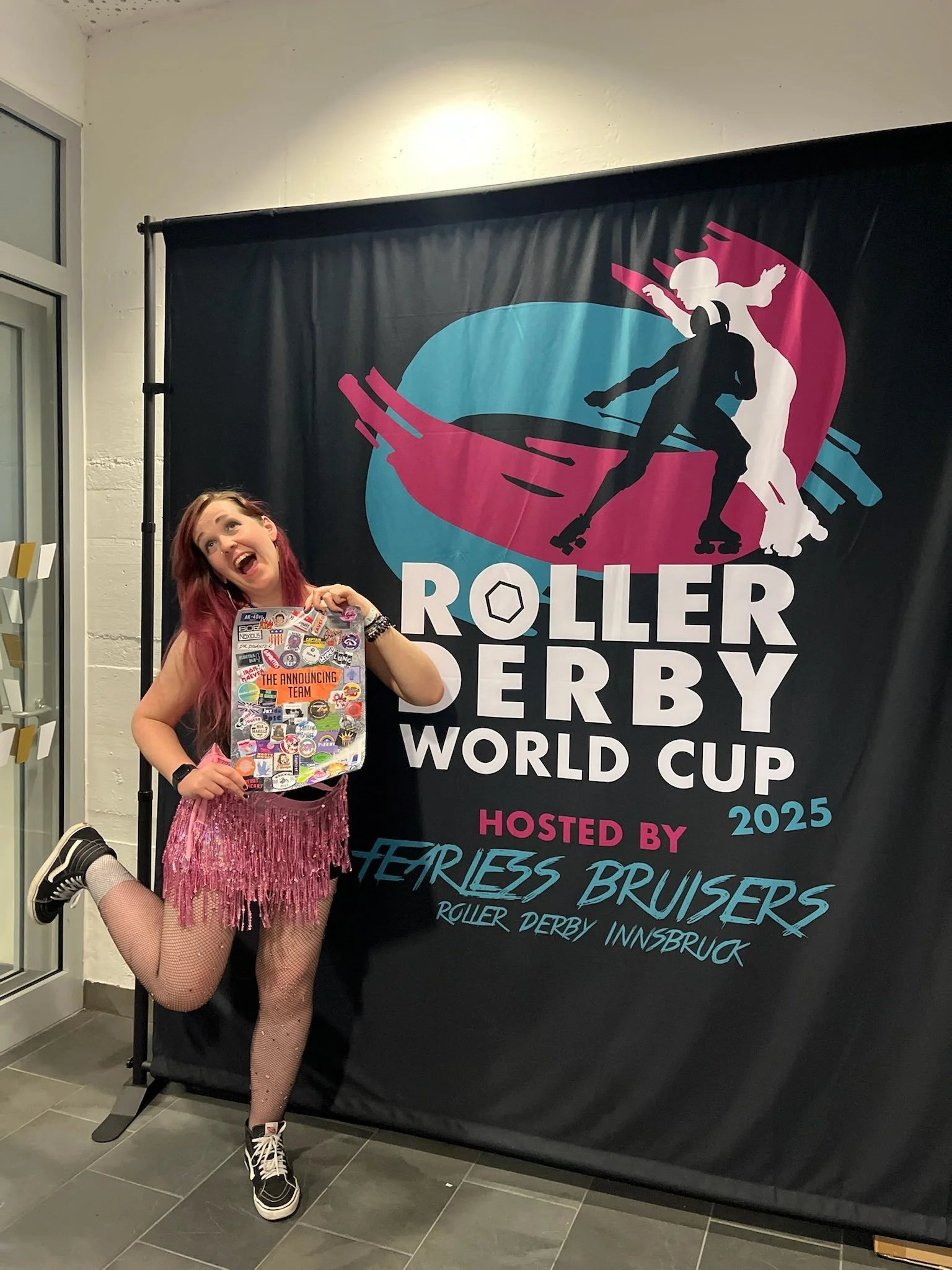 The Roller Derby World Cup 2025 was one of the most intense and joyful weekends of roller derby I’ve ever been part of. The atmosphere was all buzz and very little rest, but I wasn’t there to rest! I was there to talk roller derby, see the highest quality WFTDA aligned athletes in the world play their best, and work with the most experienced announcing team I’ve ever come across!
